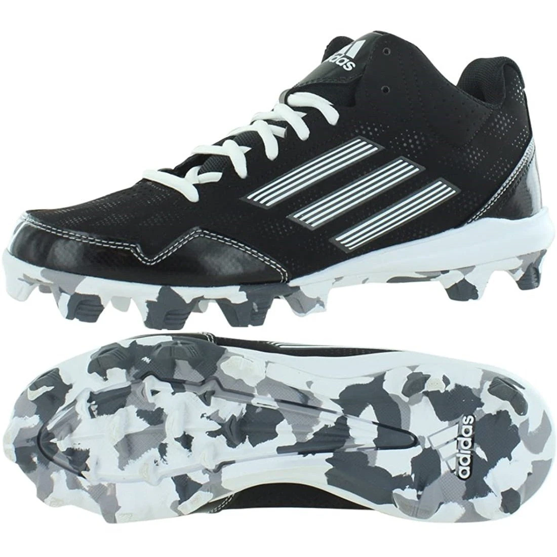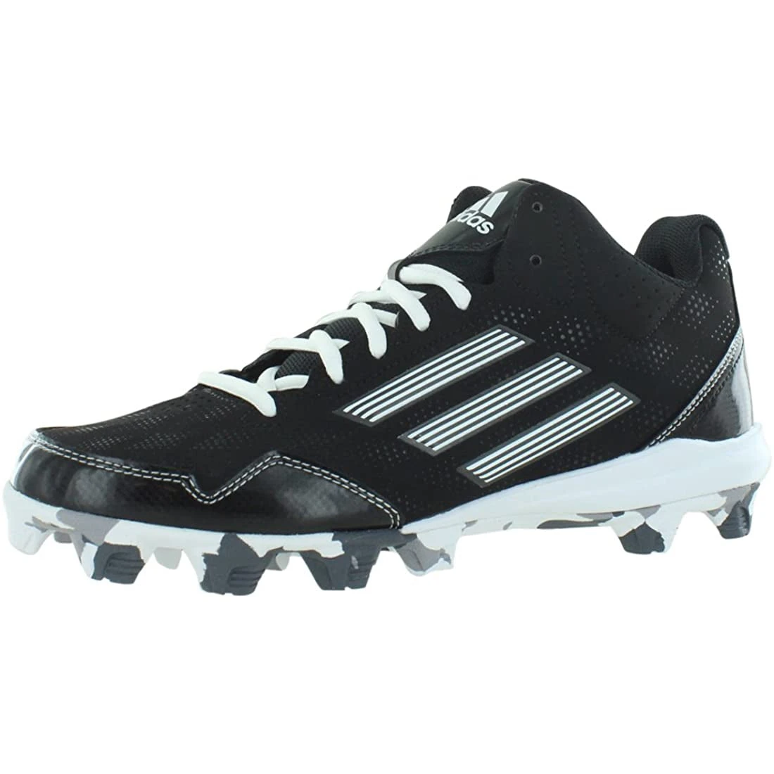 | Run inside the diamond with this lightweight adidas Performance Men’s Wheelhouse 2 Baseball Cleat. It has the style and the quality a professional player is looking for. | Features the three-stripes branding and a graphic-camo outsole with a diamond shimmer on the upper. | For lightweight cushioning, the midsole is made from a three-quarter length EVA. | The insole is made of EVA to provide comfort while running in the field. | The upper is made of Nubuck with a double-stitch toe cap for durability. |
