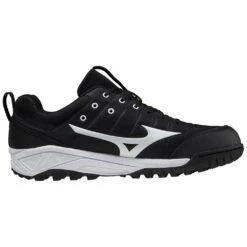 The Mizuno Ambition 2 Low Men’s All Surface Turf Shoe will bring out the athlete in you. Designed to perform optimally on natural grass, artificial turf, and all common indoor surfaces. Mizuno footwear designers studied players’ foot direction and pressure points while playing on a variety of surfaces to create a high, dense, multi-directional stud configuration. The Ambition 2 AS baseball shoe is the most versatile. It is both comfortable and stable, as well as truly innovative.