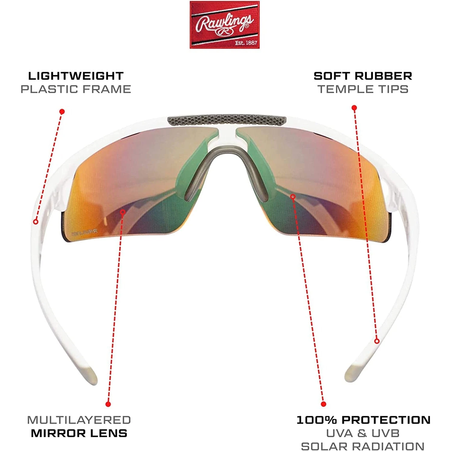 - ️FEATURES YOU DON’T WANT TO MISS. These Rawlings Baseball Sunglasses have a semi-rimless design that is perfect for on and off field. It is multi-purpose!