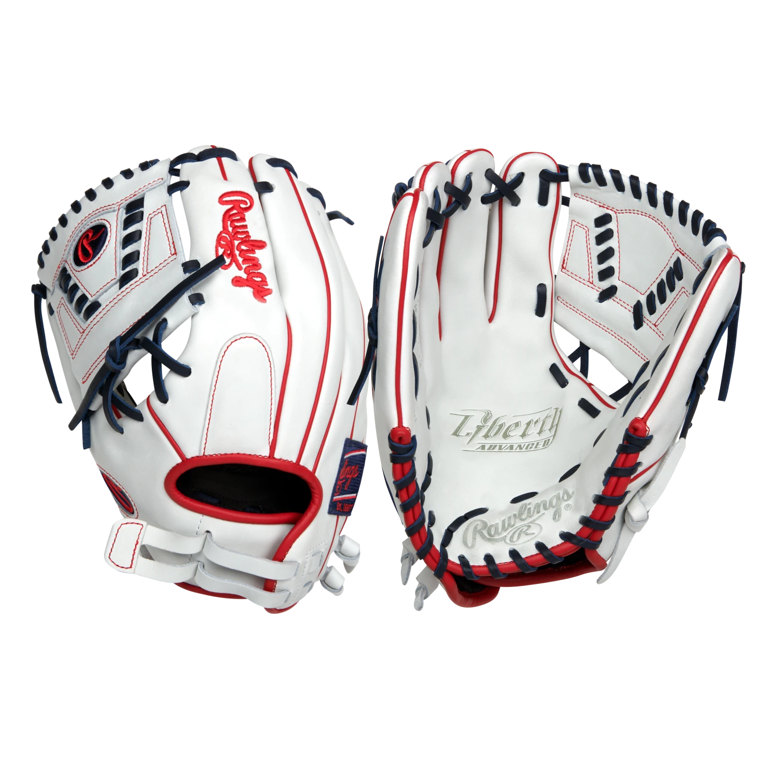 Rawlings Liberty Advanced 12″ One Piece Solid Web Fastpitch Softball Glove (White/Red/Navy)