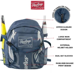 Ready to add a bit of Savage to your game day? This bag from Rawlings is the perfect medium sized bag for T-Ball, baseball, and softball players who are serious about keeping all their gear organized on game day. With features that include external bat sleeves, a mesh pocket for helmets and a large main compartment, this bag helps softball athletes in practice, training, and during competition.