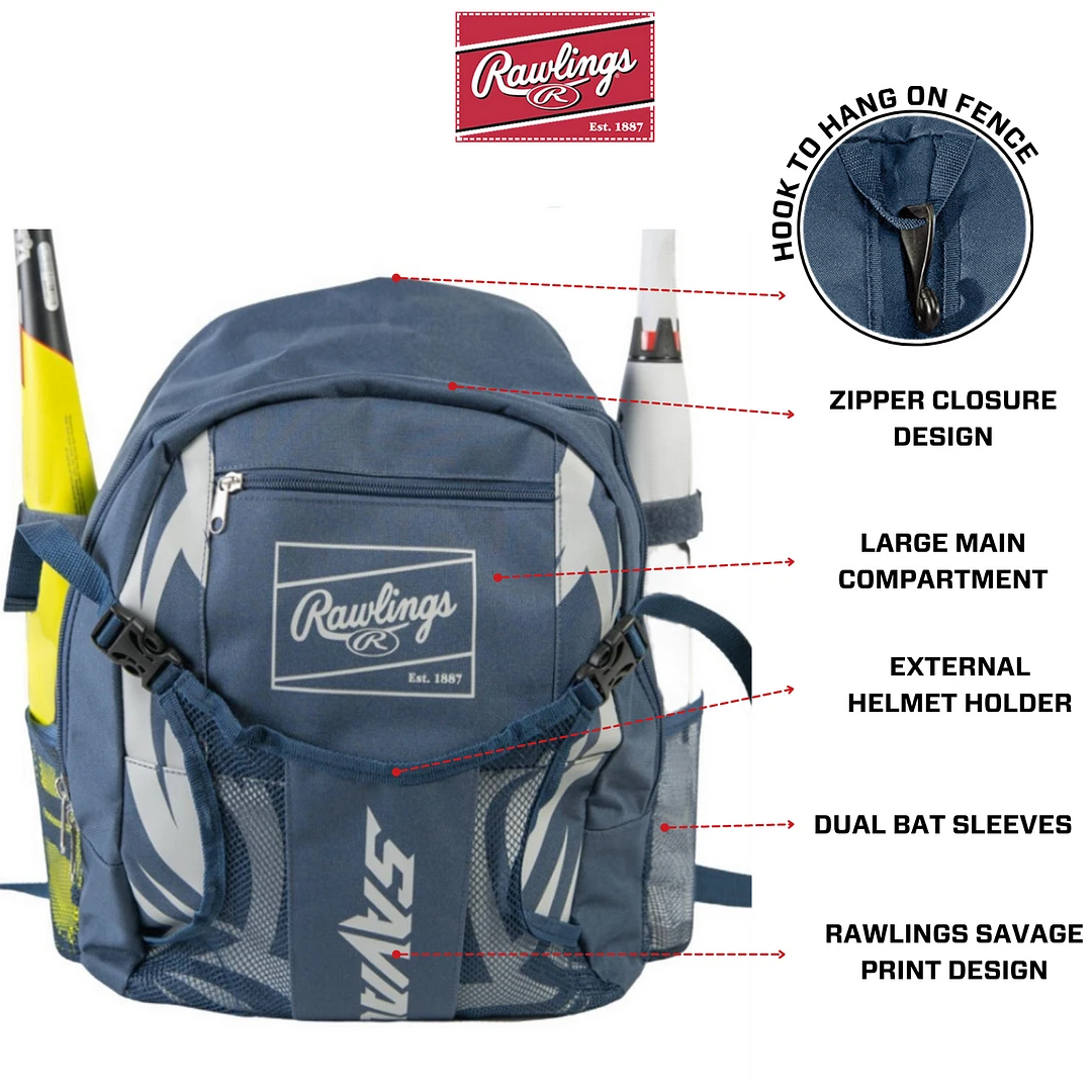 STAY GAME DAY ORGANIZED: The Savage baseball bat bag is perfectly sized for the young player. It includes strategic storage compartments to help stay organized on game day, including plenty of room to store equipment and a large main compartment with dual zippers.